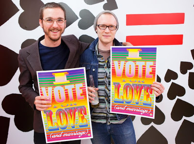here are a few photos from last night’s manifest equality opening in hollywood. if you have a chance to check out the space it’s definitely worth your time and last night’s event featured speeches by heather graham, marisa tomei (both above) and cleve jones, as well as performances by ben lee and titz and the tantrums. full gallery now up on laweekly.com. *also pictured above, daryl hannah, 2 friends holding up ‘vote for love’ signs and ben lee performing.