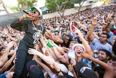 thousands of los angelinos packed downtown la streets for the latest free mad decent block party with performances by Zeds Dead, Theophilus London (top), Munchi, Paul Devro and a ton more. la weekly gallery UP HERE.